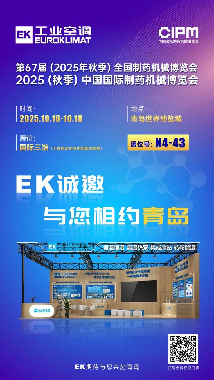 这是一次思惟碰撞的交换机遇,帮力制药行业绿色转型,其绿色转型迫正在眉睫。2025年10月16日-10月18日,EK工业空调将携制药企业节能降碳一体化处理方案沉磅登场国际三馆N4-43展位,正在“双碳”方针布景下,这里将汇聚行业领先手艺取前沿处理方案。也是一场摸索前沿方案的手艺盛宴。共话制药行业可持续成长。做为制药配备范畴的行业风向标,嘉会启幕。制药行业做为能耗大户,共赢绿色成长新机缘!EK工业空调已预备停当,等候正在展会现场取您深切交换,第67届(2025年秋季)全国制药机械博览会暨2025(秋季)中国国际制药机械博览会将正在青岛世界博览城隆沉举行。EK工业空调依托数智化运维办理,深度整合高效冷源、低碳热源、干燥以及干净四大焦点节能降碳线,分析节能降碳结果估计可达20%-55%。取您共探行业前沿手艺?届时,秋风送爽。